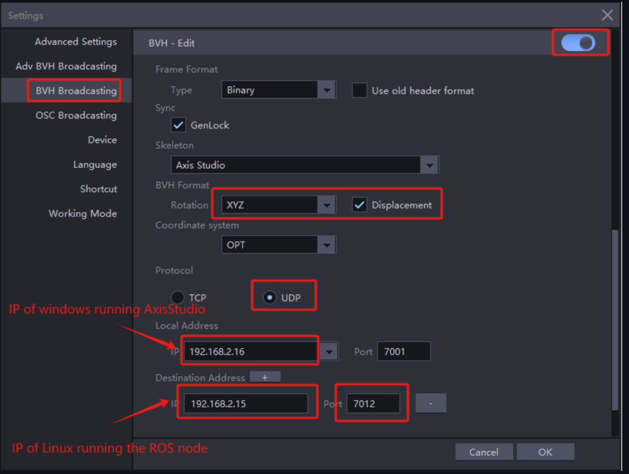 - 从Mocap软件中捕获BVH格式数据(机器人穿戴着动捕设备);
