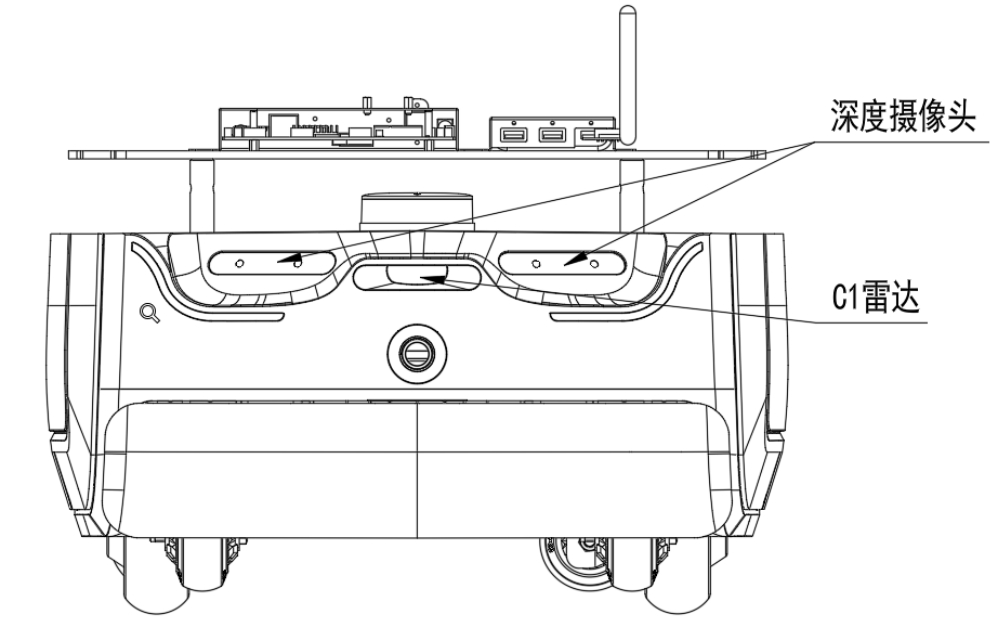- 深度相机及C1雷达 深度相机为两个。C1雷达应该就是参数表中的低矮障碍物识别传感器?不过机器人本身似乎也有带碰撞条。