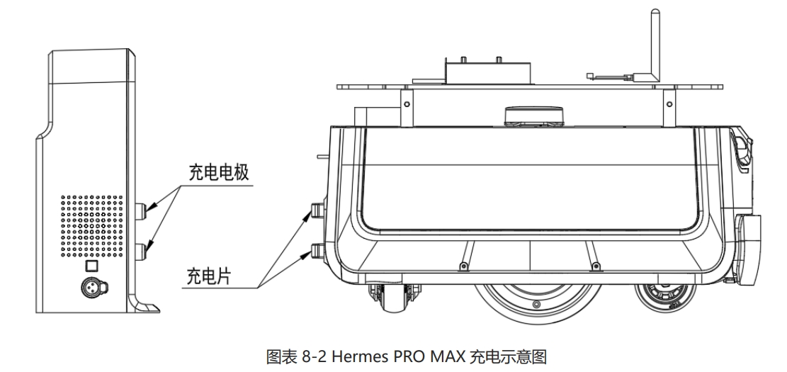 有自动回充功能,但是Hermes PRO MAX 底盘单独运行时,自动回充功能无法触发,需要开启配送或消毒插件才能使用。定制机型和搭配整机使用则有自动回充功能。