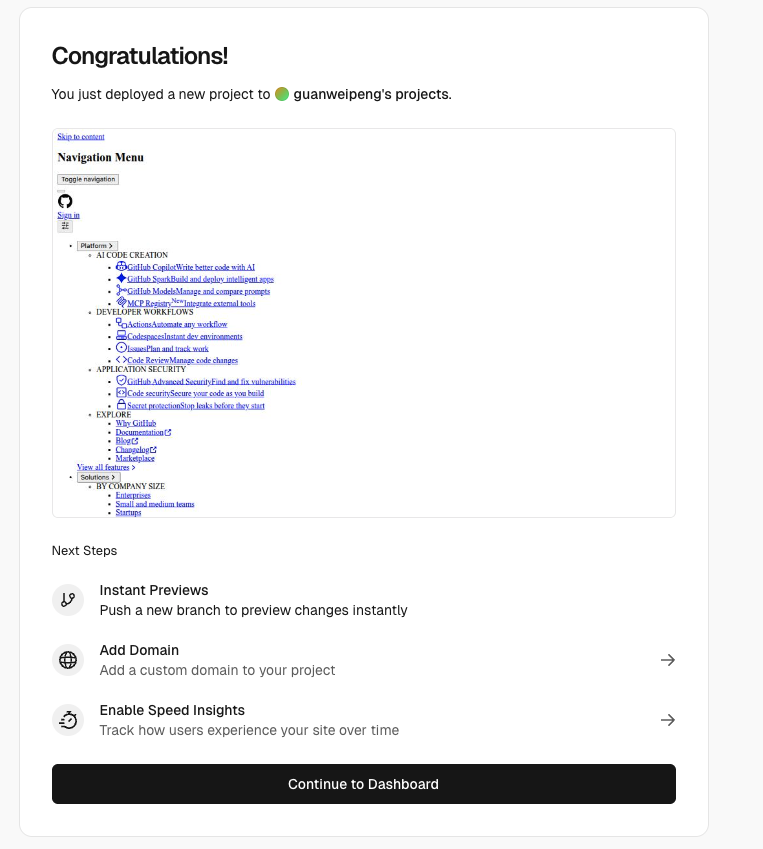 因此,本博文将其部署到自己的 Vercel 账号下。这样就有专属于你自己的域名和 API 额度,再也不会遇到“过期”或“速度慢”的问题。