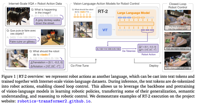 - 视觉系统能够“看”并识别图像。传统的CV可以通过CNN来识别物体或者进行分类,但是并不能理解语言、也没有将视觉转换为action的能力。