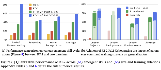- 广泛的跨平台通用性:一个在大量多样化数据集上预训练好的VLA模型,可以相对容易地部署到不同的机器人硬件平台上。由于其已经具备了通用的世界知识和任务理解(common sense),针对特定场景或新机器人的适配只需进行少量数据的微调,极大地降低了迁移成本,为实现“一个模型控制万千机器人”的愿景奠定了基础。