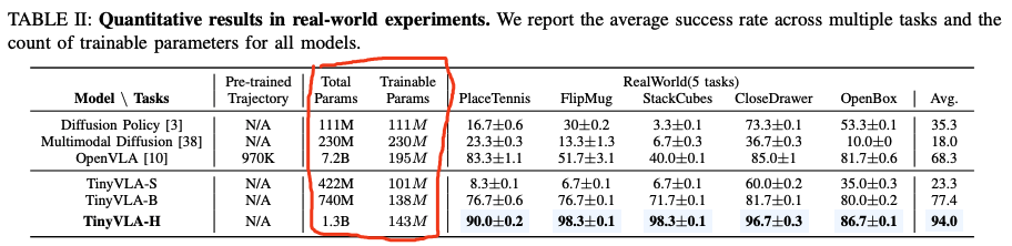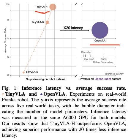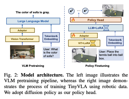 | 2025 | 上海AI Lab与北京人形 | TinyVLA | ViT+LLM | 在OpenVLA基础上引入轻量VLM模型以及diffusion policy decoder |
