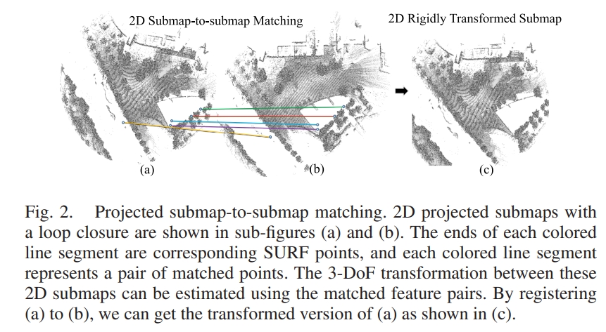 - 回环检测采用的提取3D submap投影的2D image,对2D image进行特征点匹配