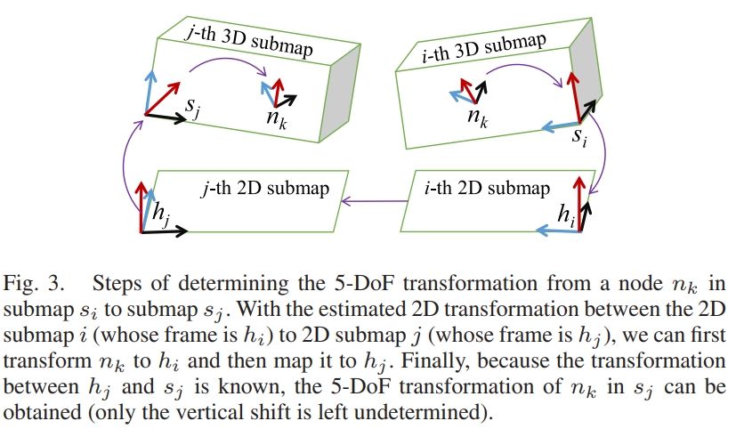 - 通过2D submaps(用的cartographer的回环检测)的相互匹配实现回环检测