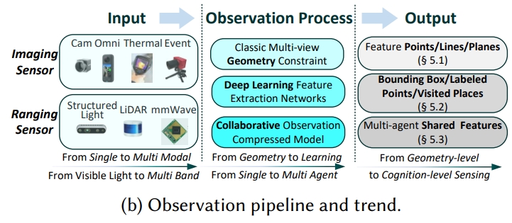 机器人通过外部传感器(exteroceptive sensors)来感知环境,从而形成对外部世界的认知。本section介绍了从低层次特征提取到高层次认知理解,再到多智能体协作感知的观察方法。