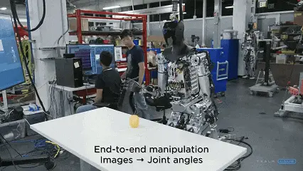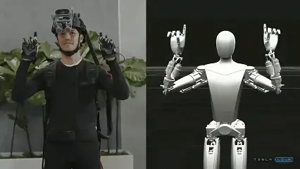 - 动作捕捉与技能迁移:第二代的Optimus 通过多模态动作捕捉与端到端神经网络的无缝协同,实现了人类技能的快速迁移:工程人员佩戴 VR 头显与动作捕捉服进行操作,其动作序列被多传感器系统实时采集,经基于 Transformer 的端到端模型解析后,直接生成机器人关节控制参数。