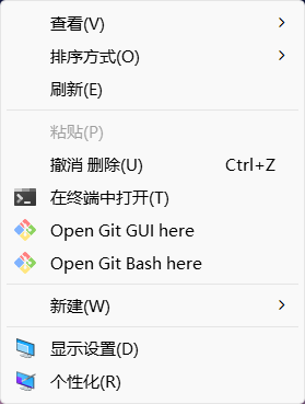 安装完成后,在桌面上点击右键,出现下图所示的图标,则表示安装成功:
